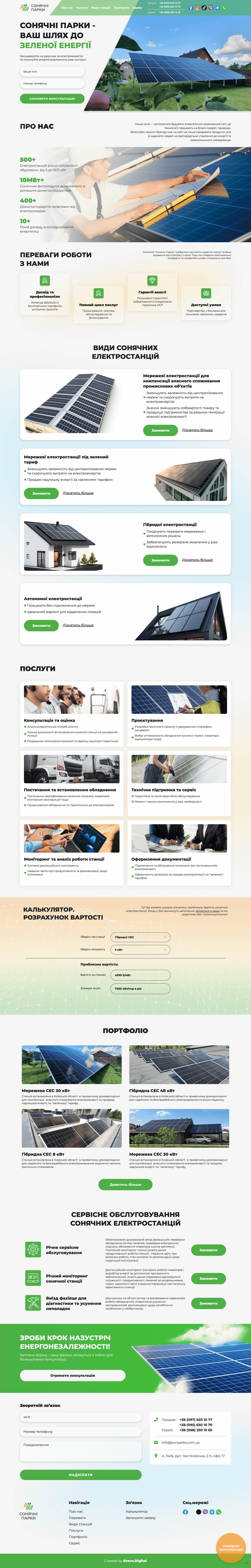 Сайт для компанії, що будує сонячні електростанції — з фокусом на енергонезалежність, простоту й довіру.